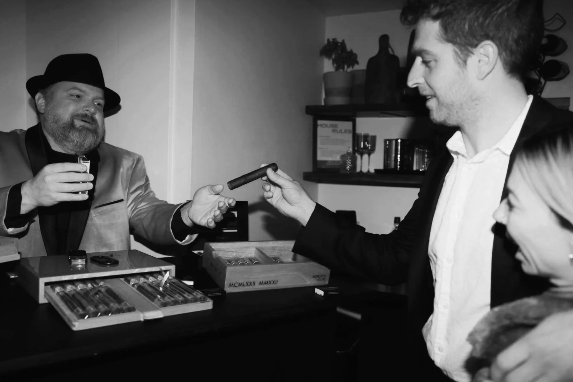 Additional cigars, extended hours, hand-rolling, and expanded lounge elements available.